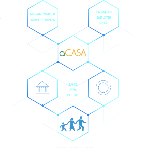 Download the White PaperaCASA has created a disruptive low cost Blockchain and Smart Contract money to money transfer platform that permits Migrant Workers and their Family Members to convert their aCASA Token to goods and services. The aCASA Solution is a simple to use Token Utility Product that saves the Migrant Worker Force from High Remittance Costs, Exorbitant and Foreign Exchange Commission Rates. The aCASA product contains a unique Corporate Wallet at one end and a posse of redemption points at the other end which benefits the employer by reducing payroll processing costs like check issuance and courier charges. Our Surveys show critical savings to the employer of 25% in payroll processing and 20% savings to the migrant workers from salary remitted to their home country family member.